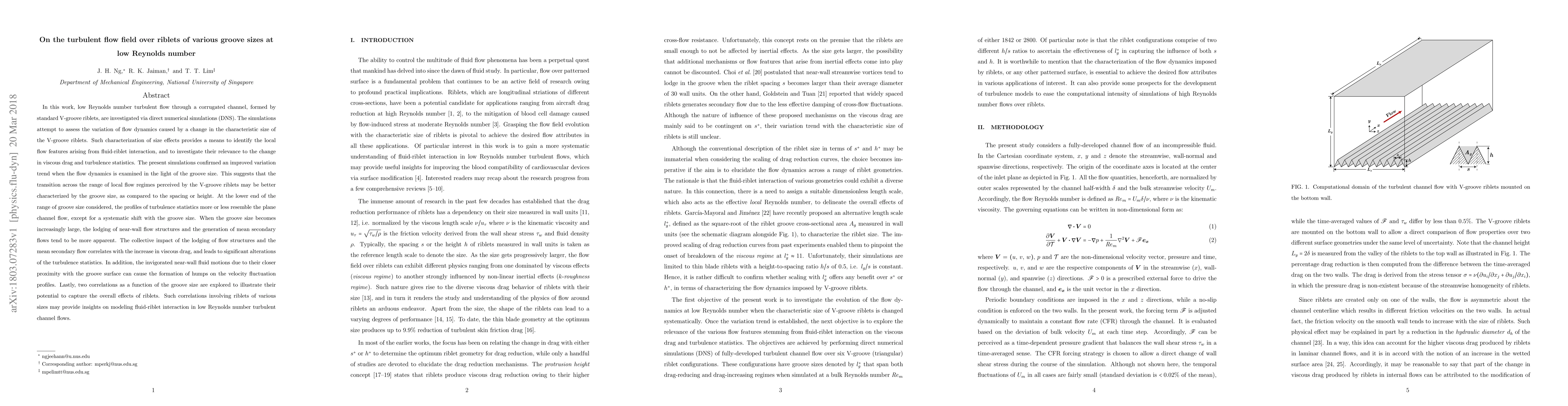 This study uses direct numerical simulations to investigate turbulent flow over V-groove riblets of varying sizes at low Reynolds numbers, revealing that larger groove sizes lead to more pronounced lodging of near-wall flow structures and mean secondary flows, correlating with increased viscous drag and significant changes in turbulence statistics.