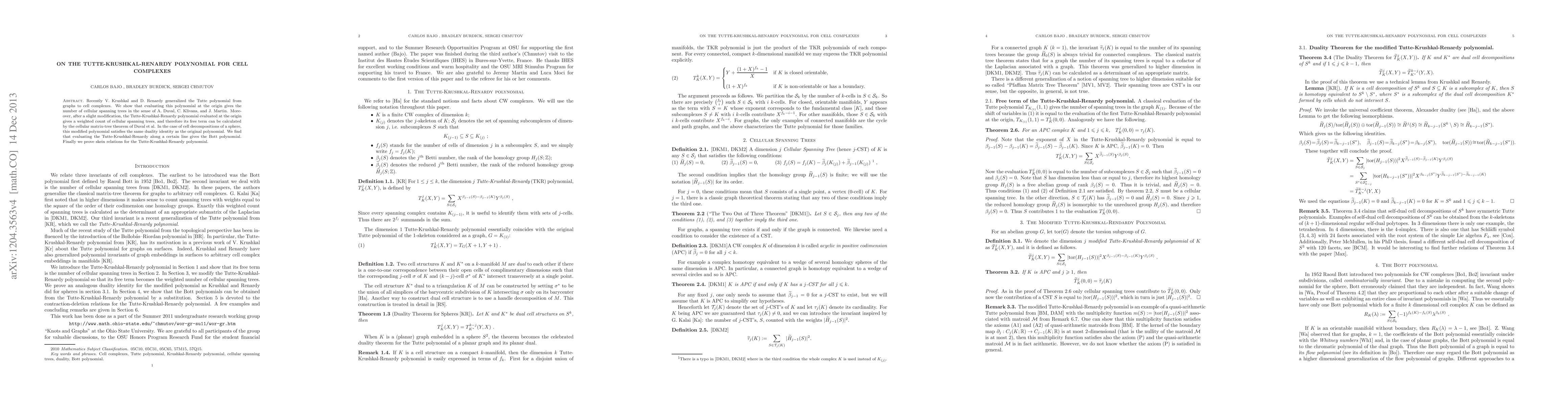 This paper generalizes the Tutte polynomial to cell complexes, showing that evaluating it at the origin counts cellular spanning trees. The modified polynomial provides a weighted count and satisfies duality, while evaluating it along a line yields the Bott polynomial, and it also satisfies skein relations.