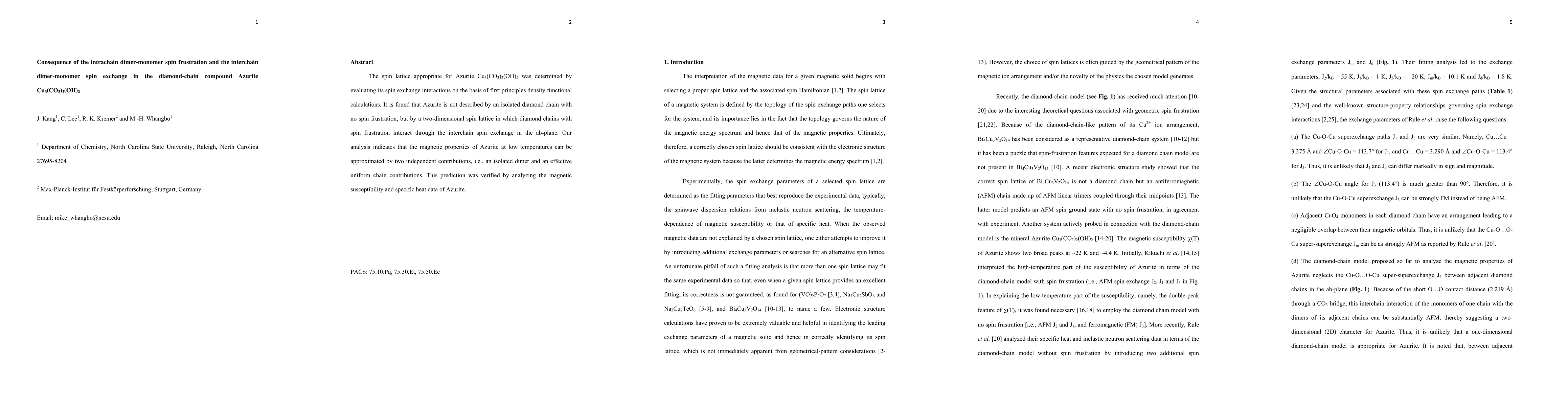The spin lattice appropriate for Azurite Cu3(CO3)2(OH)2 was determined by evaluating its spin exchange interactions on the basis of first principles density functional calculations. It is found that Azurite is not described by an isolated diamond chain with no spin frustration, but by a two-dimensional spin lattice in which diamond chains with spin frustration interact through the interchain spin exchange in the ab-plane. Our analysis indicates that the magnetic properties of Azurite at low temperatures can be approximated by two independent contributions, i.e., an isolated dimer and an effective uniform chain contributions. This prediction was verified by analyzing the magnetic susceptibility and specific heat data of Azurite.