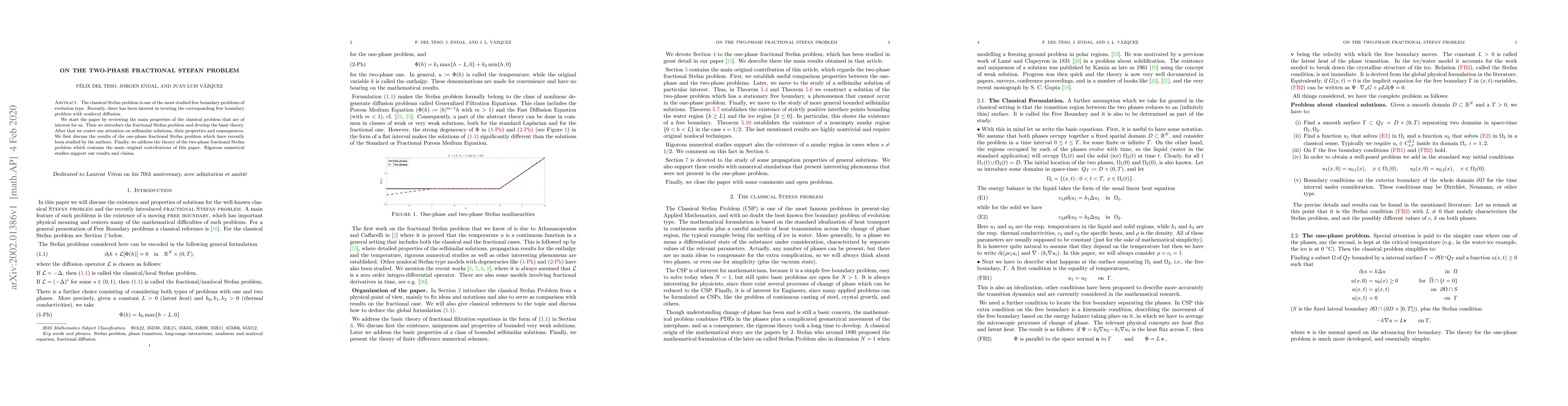 This paper reviews the classical Stefan problem and introduces the fractional Stefan problem, focusing on self-similar solutions and their properties. The main contribution is the development of the theory for the two-phase fractional Stefan problem, supported by rigorous numerical studies.