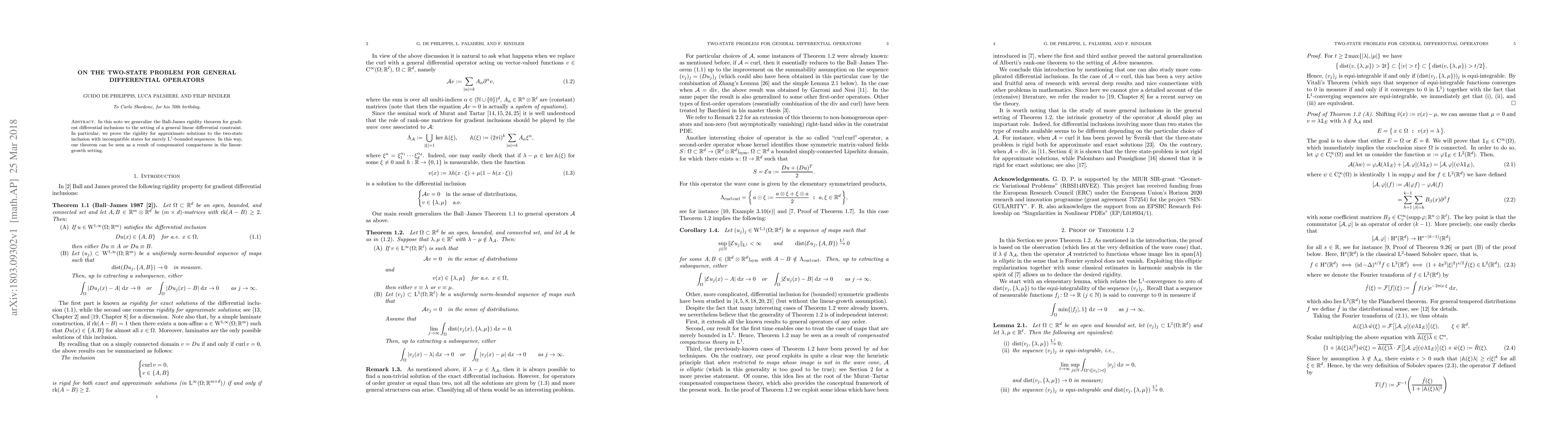 This paper extends a theorem by Ball and James to general linear differential constraints, proving rigidity for approximate solutions of a two-state inclusion with incompatible states. This is achieved even with only $mathrm{L}^1$-bounded sequences, contributing to compensated compactness in linear-growth settings.