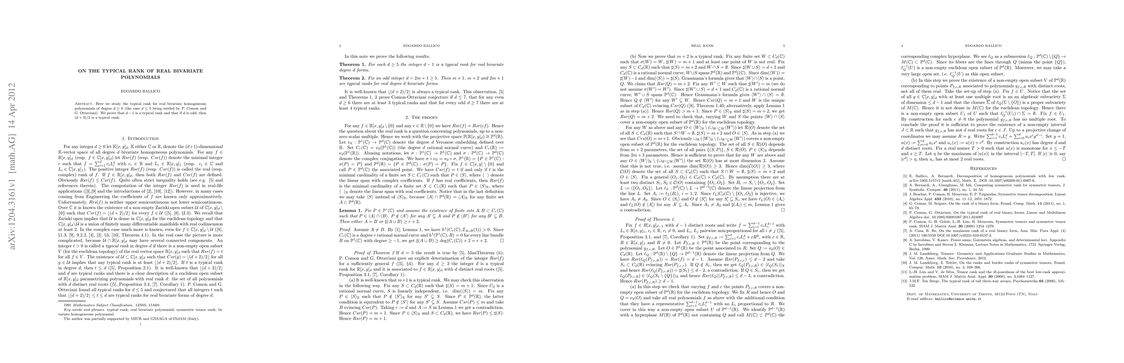 Here we study the typical rank for real bivariate homogeneous polynomials of degree $d\ge 6$ (the case $d\le 5$ being settled by P. Comon and G. Ottaviani). We prove that $d-1$ is a typical rank and that if $d$ is odd, then $(d+3)/2$ is a typical rank.