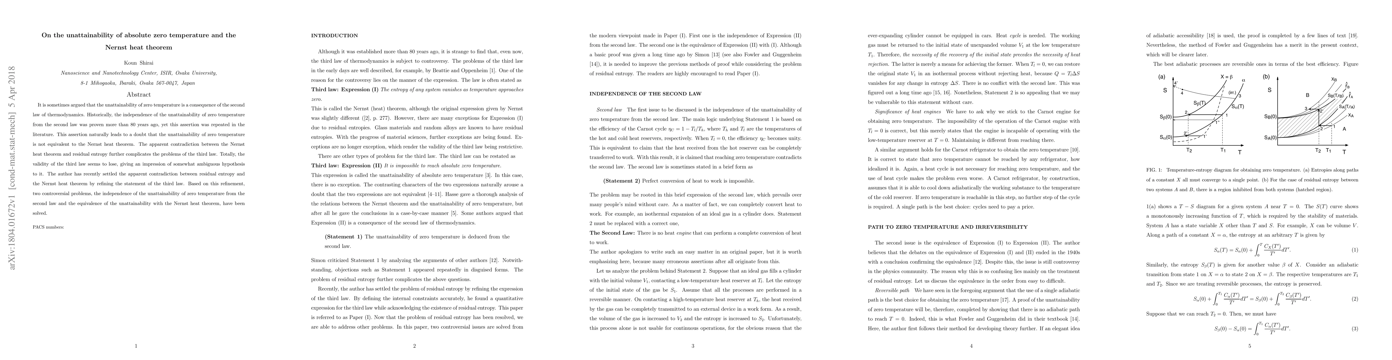 This paper resolves longstanding debates about the unattainability of absolute zero temperature and the Nernst heat theorem, clarifying their independence from the second law and their equivalence, thereby resolving apparent contradictions with residual entropy and reinforcing the third law.