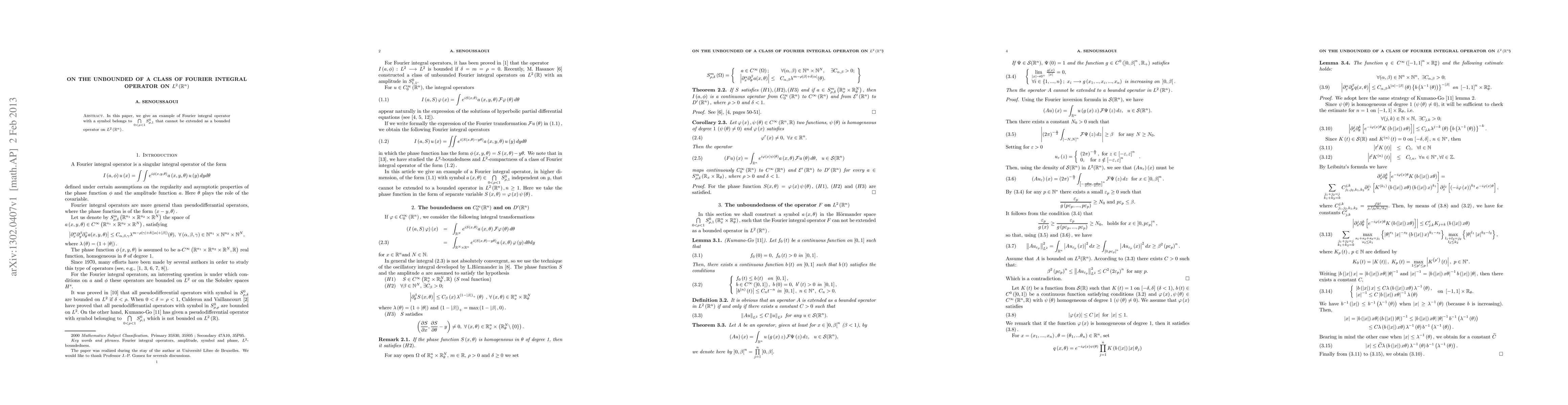 In this paper, we give an example of Fourier integral operator with a symbol belongs to $\bigcap\limits_{0<\rho <1}S_{\rho,1}^{0}$ that cannot be extended as a bounded operator on $L^{2}(\mathbb{R}^{n}).$