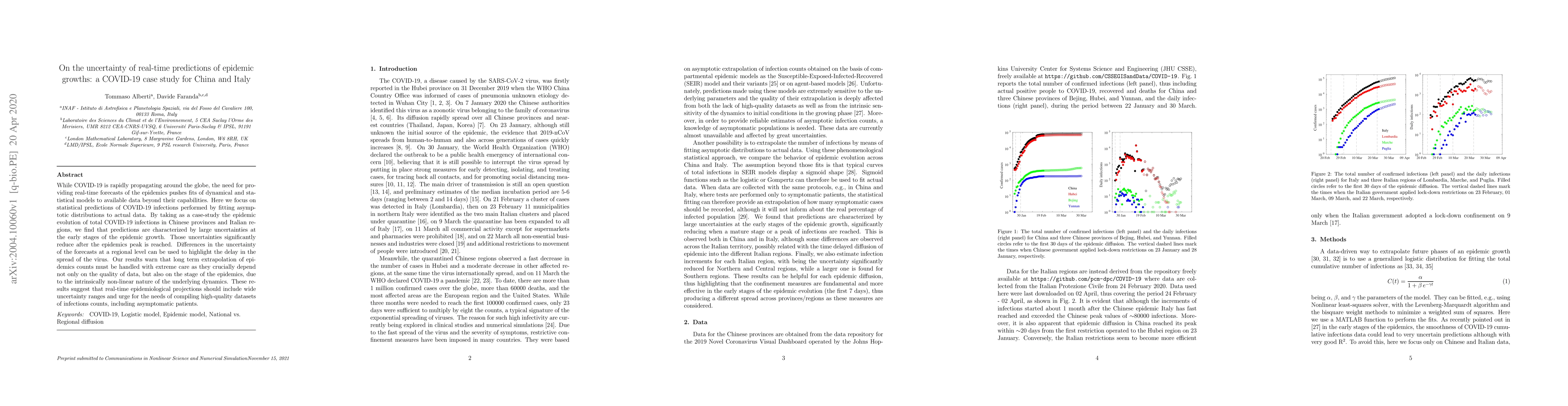 This paper examines the uncertainties in real-time predictions of COVID-19 growth in China and Italy, finding significant early-stage uncertainties that diminish post-peak. It emphasizes the need for cautious long-term extrapolations and highlights the importance of high-quality data for accurate projections.