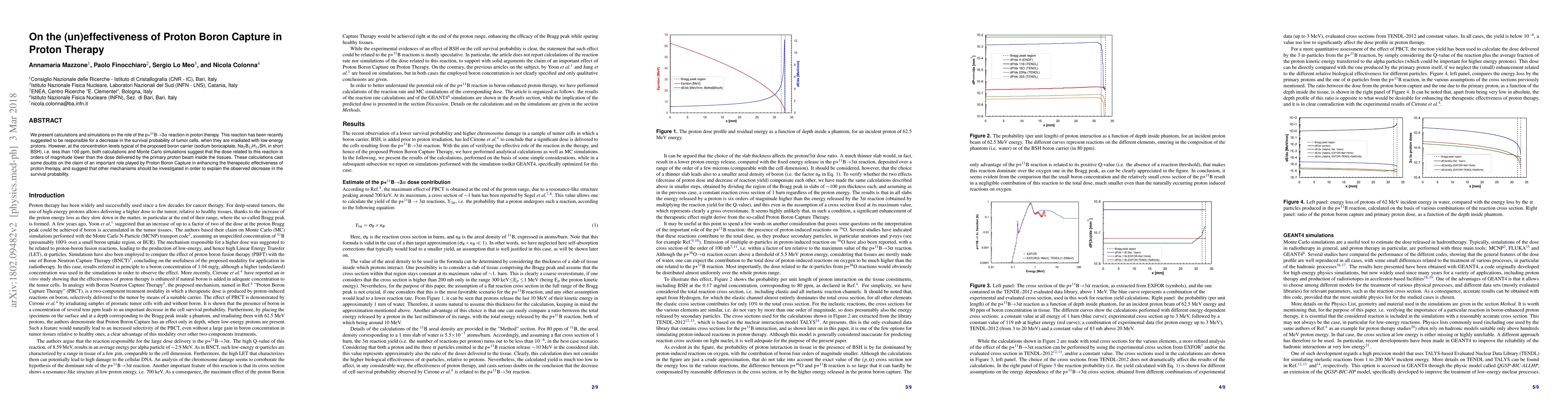 We present calculations and simulations on the role of the p+$^{11}$B$\to$3$\alpha$ reaction in proton therapy. This reaction has been recently suggested to be responsible for a decrease in the survival probability of tumor cells, when they are irradiated with low-energy protons. However, at the concentration levels typical of the proposed boron carrier (sodium borocaptate, Na$_{2}$B$_{12}$H$_{11}$SH, in short BSH), i.e. less than 100 ppm, both calculations and Monte Carlo simulations suggest that the dose related to this reaction is orders of magnitude lower than the dose delivered by the primary proton beam inside the tissues. These calculations cast some doubts on the claim of an important role played by Proton Boron Capture in enhancing the therapeutic effectiveness of proton therapy, and suggest that other mechanisms should be investigated in order to explain the observed decrease in the survival probability.