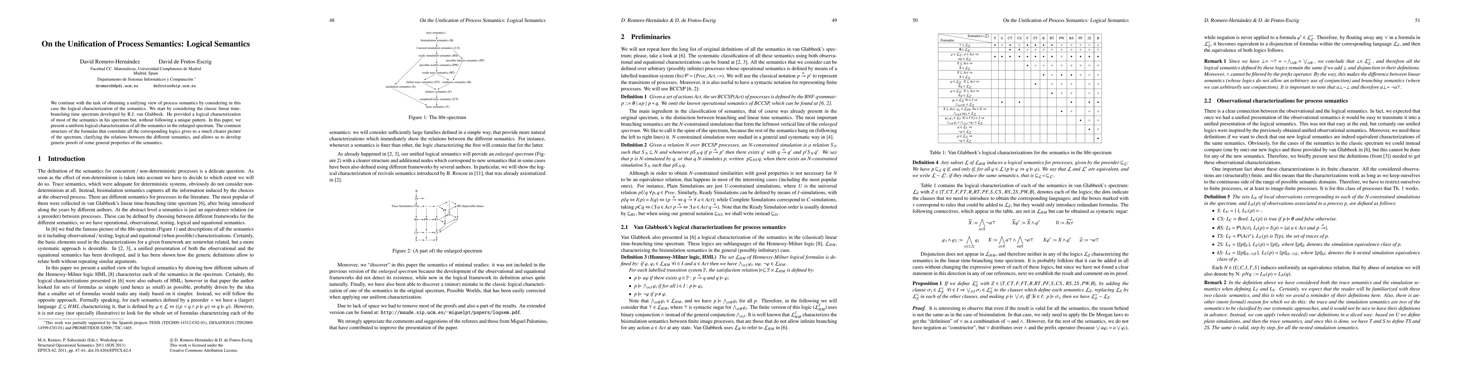 This paper aims to unify process semantics through a logical characterization, presenting a uniform logical framework for the entire spectrum of semantics. It clarifies relationships between different semantics and develops generic proofs for general properties.