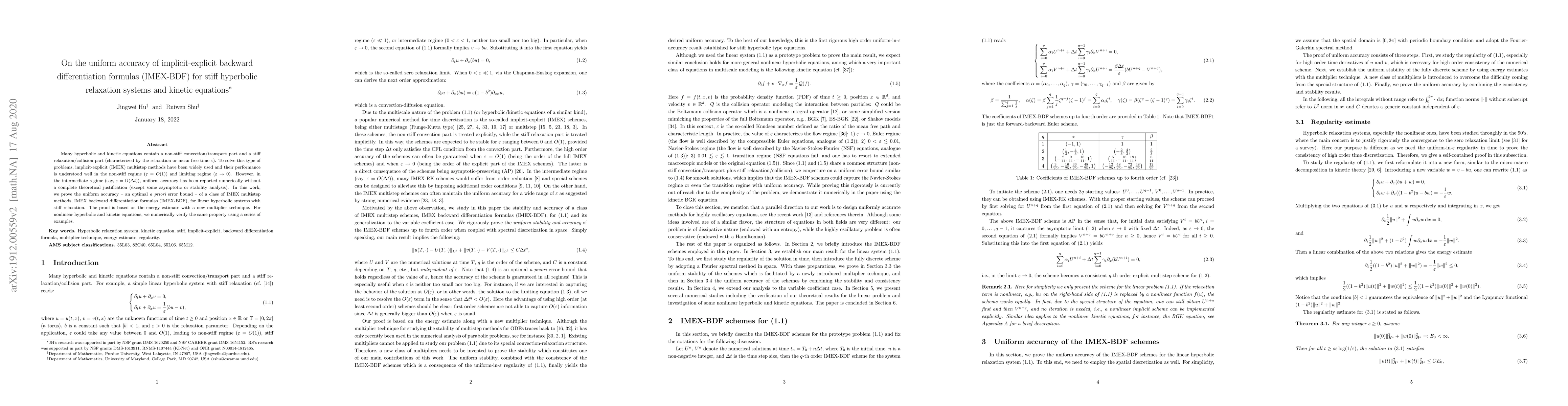 This paper proves the uniform accuracy of IMEX-BDF methods for solving stiff hyperbolic relaxation systems, providing an optimal error bound. Numerical verification for nonlinear cases is also demonstrated through examples.