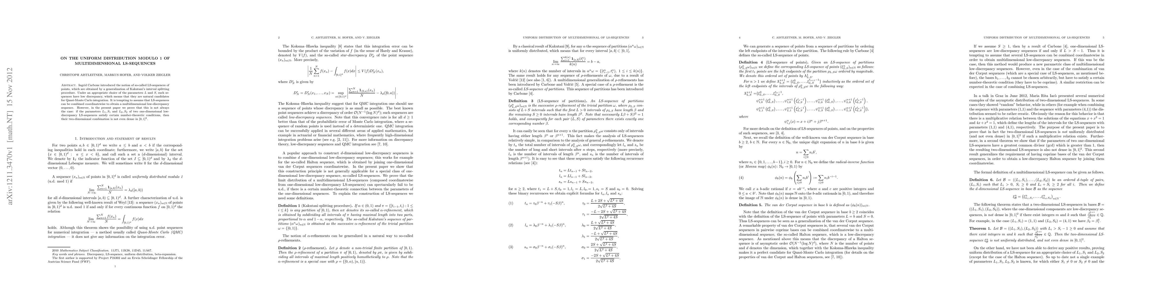 Ingrid Carbone introduced the notion of so-called LS-sequences of points, which are obtained by a generalization of Kakutani's interval splitting procedure. Under an appropriate choice of the parameters $L$ and $S$, such sequences have low discrepancy, which means that they are natural candidates for Quasi-Monte Carlo integration. It is tempting to assume that LS-sequences can be combined coordinatewise to obtain a multidimensional low-discrepancy sequence. However, in the present paper we prove that this is not always the case: if the parameters $L_1,S_1$ and $L_2,S_2$ of two one-dimensional low-discrepancy LS-sequences satisfy certain number-theoretic conditions, then their two-dimensional combination is not even dense in $[0,1]^2$.