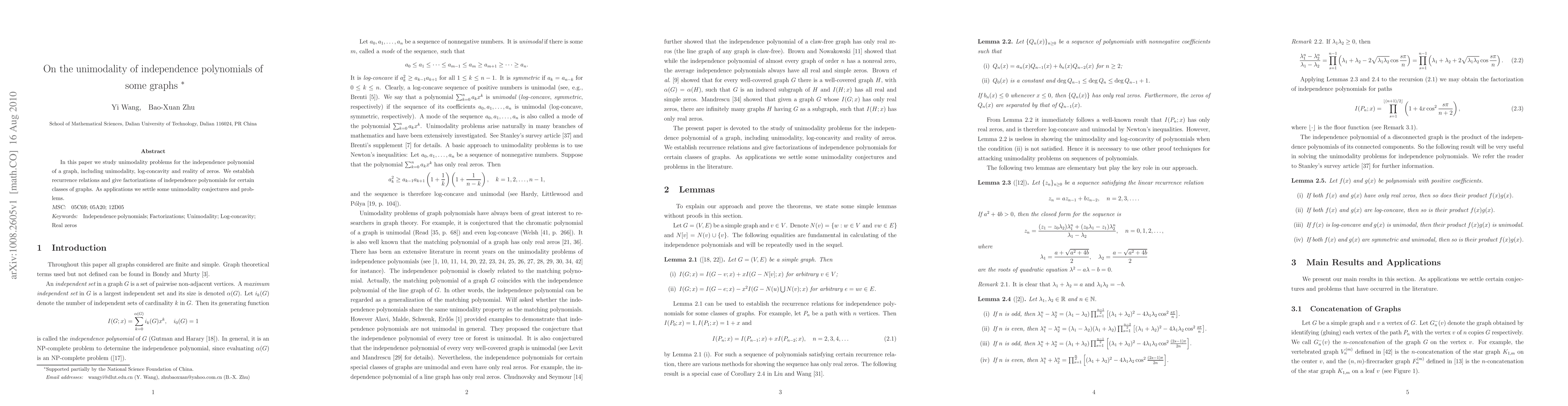 This paper investigates unimodality, log-concavity, and zero properties of independence polynomials for specific graph classes, deriving recurrence relations and factorizations to resolve several conjectures and problems in the field.