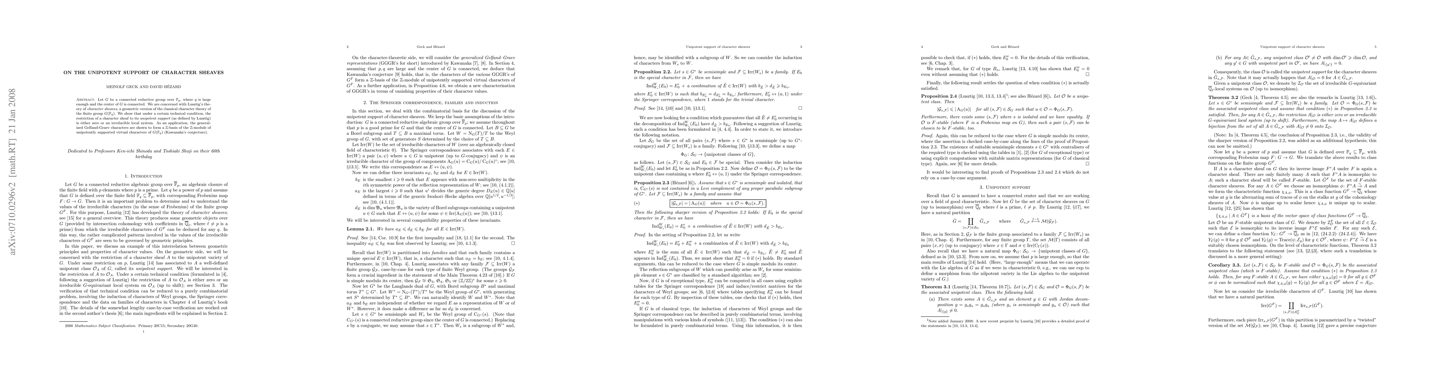 Summary: The paper examines Lusztig's character sheaves for a connected reductive group over a finite field, demonstrating that their restriction to unipotent support is either zero or irreducible. It confirms Kawanaka's conjecture by showing generalized Gelfand-Graev characters form a basis for unipotently supported virtual characters.