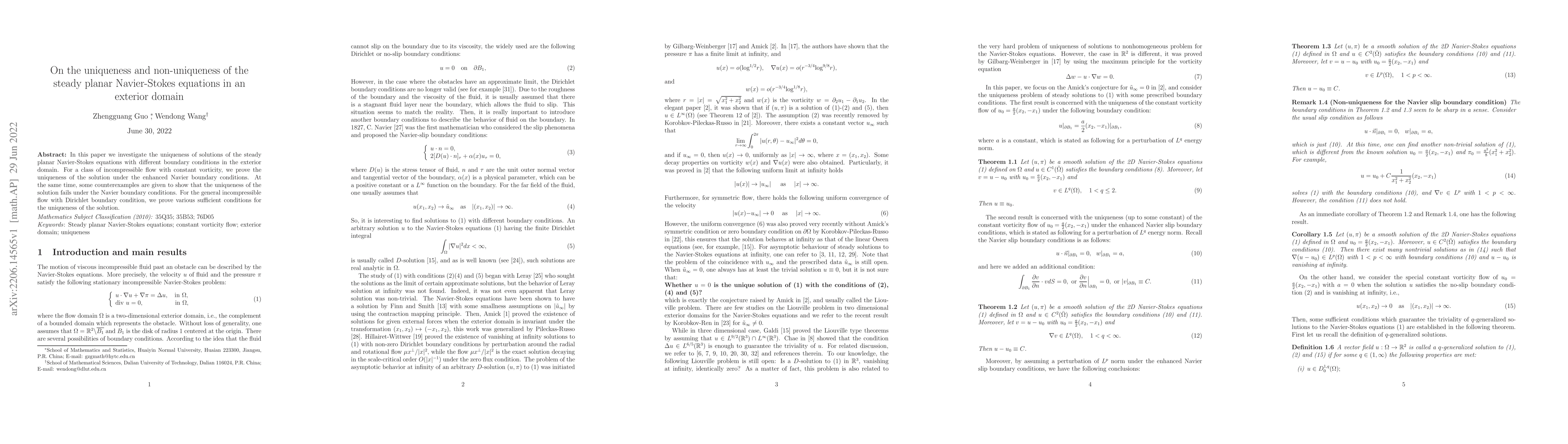 In this paper we investigate the uniqueness of solutions of the steady planar Navier-Stokes equations with different boundary conditions in the exterior domain. For a class of incompressible flow with constant vorticity, we prove the uniqueness of the solution under the enhanced Navier boundary conditions. At the same time, some counterexamples are given to show that the uniqueness of the solution fails under the Navier boundary conditions. For the general incompressible flow with Dirichlet boundary condition, we prove various sufficient conditions for the uniqueness of the solution.