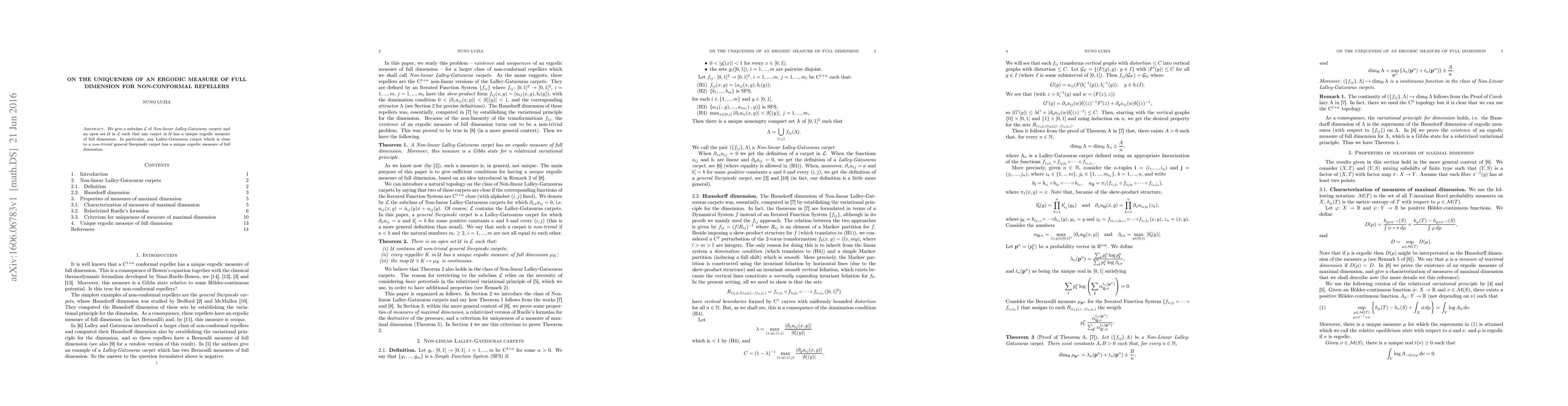 This paper establishes that certain non-linear carpets have a unique ergodic measure of full dimension, particularly those close to non-trivial Sierpinski carpets.