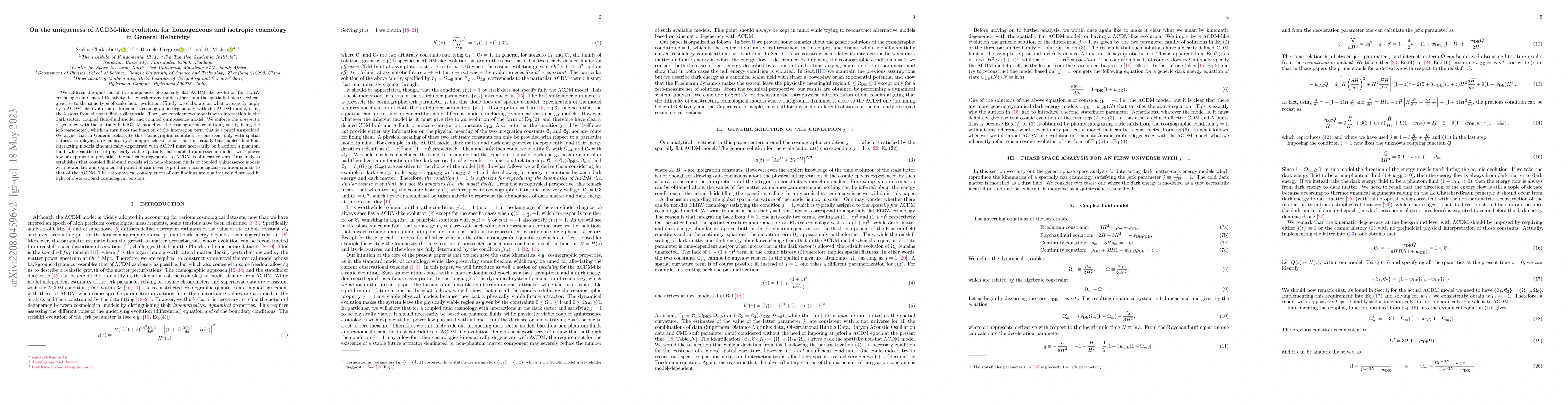 This paper investigates the uniqueness of spatially flat $\Lambda$CDM-like evolution in FLRW cosmologies within General Relativity, focusing on whether other models can replicate the same scale factor evolution. It shows that under the cosmographic condition $j=1$, only spatially flat models can kinematically degenerate with $\Lambda$CDM, concluding that coupled fluid-fluid models with non-phantom fluids and certain coupled quintessence models cannot reproduce the $\Lambda$CDM evolution.