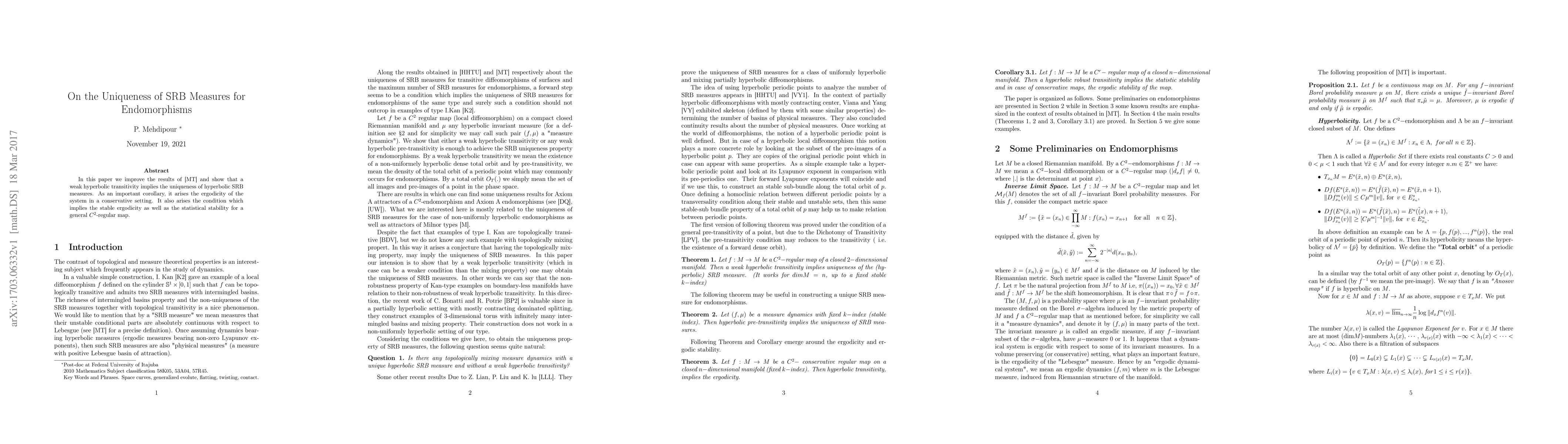 In this paper we improve the results of \cite{MT} and show that a weak hyperbolic transitivity implies the uniqueness of hyperbolic SRB measures. As an important corollary, it arises the ergodicity of the system in a conservative setting. It also arises the condition which implies the stable ergodicity as well as the statistical stability for a general $C^2$-regular map.