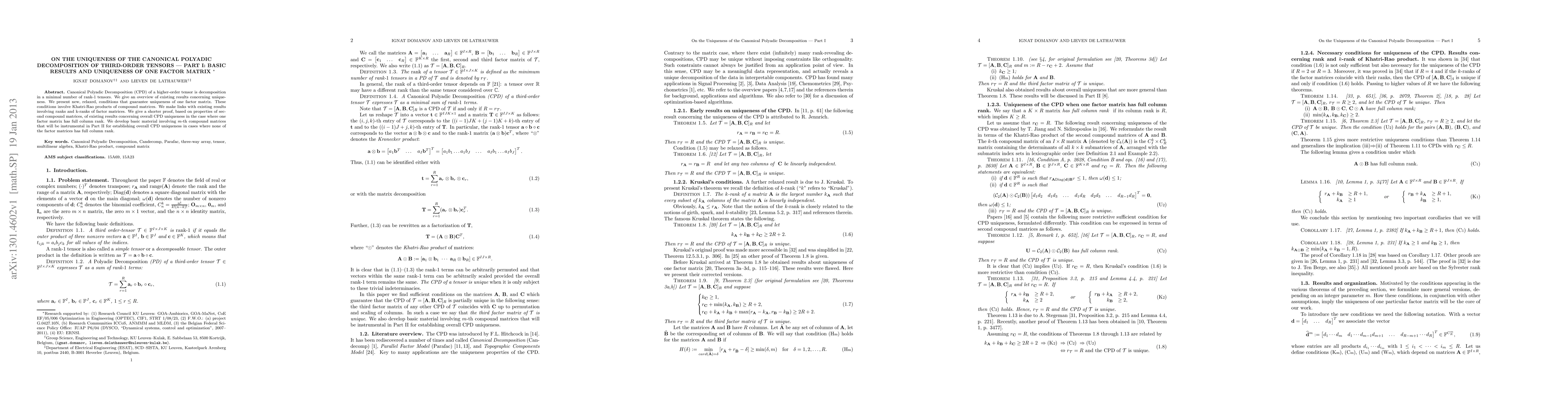 This paper explores the uniqueness of the Canonical Polyadic Decomposition (CPD) of third-order tensors, focusing on conditions that ensure the uniqueness of one factor matrix. It introduces new, relaxed conditions involving Khatri-Rao products and provides a shorter proof for existing uniqueness results based on second compound matrices.