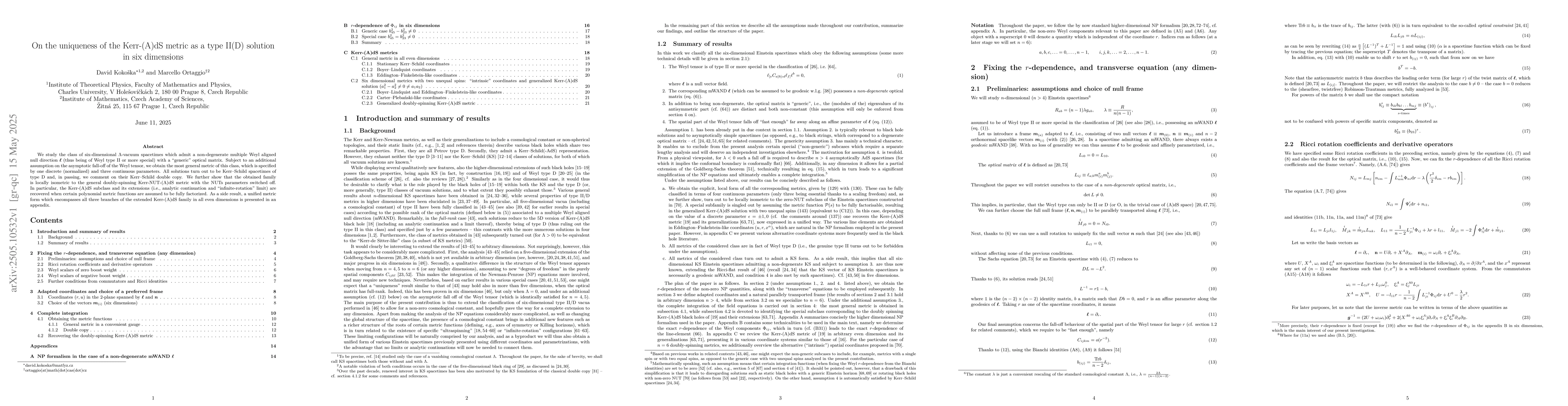 This research contributes to the understanding of Kerr-(A)dS metrics in six dimensions, providing a comprehensive description of their uniqueness as type II(D) solutions, which has implications for general relativity and higher-dimensional gravity theories.