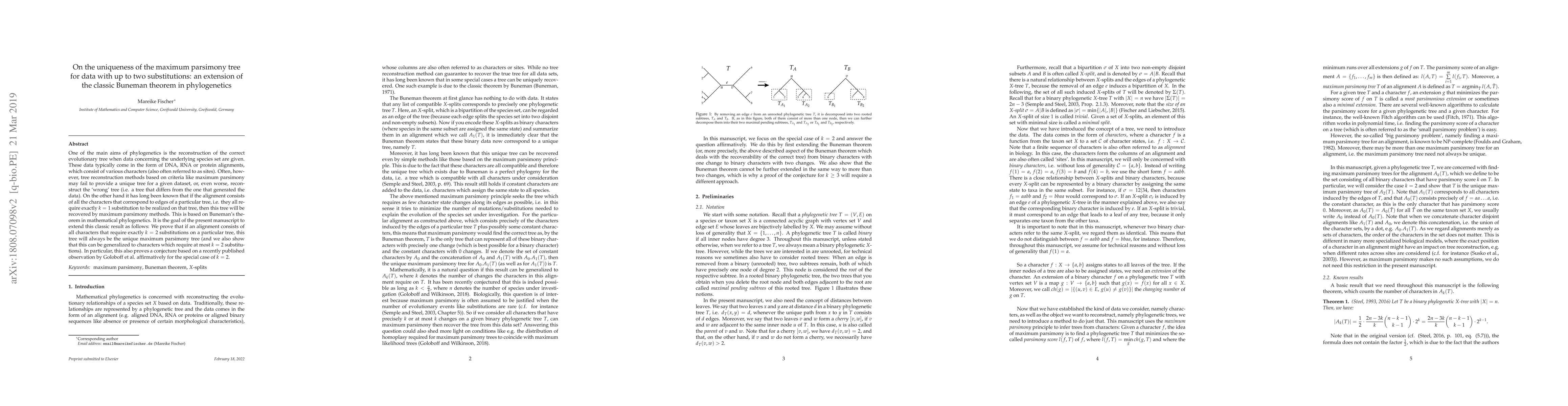 This paper extends Buneman's theorem in phylogenetics by proving that if an alignment consists of characters requiring exactly two substitutions on a particular tree, the maximum parsimony method will uniquely reconstruct this tree. This result also generalizes to characters requiring at most two substitutions, confirming a conjecture for the case of $k=2$.