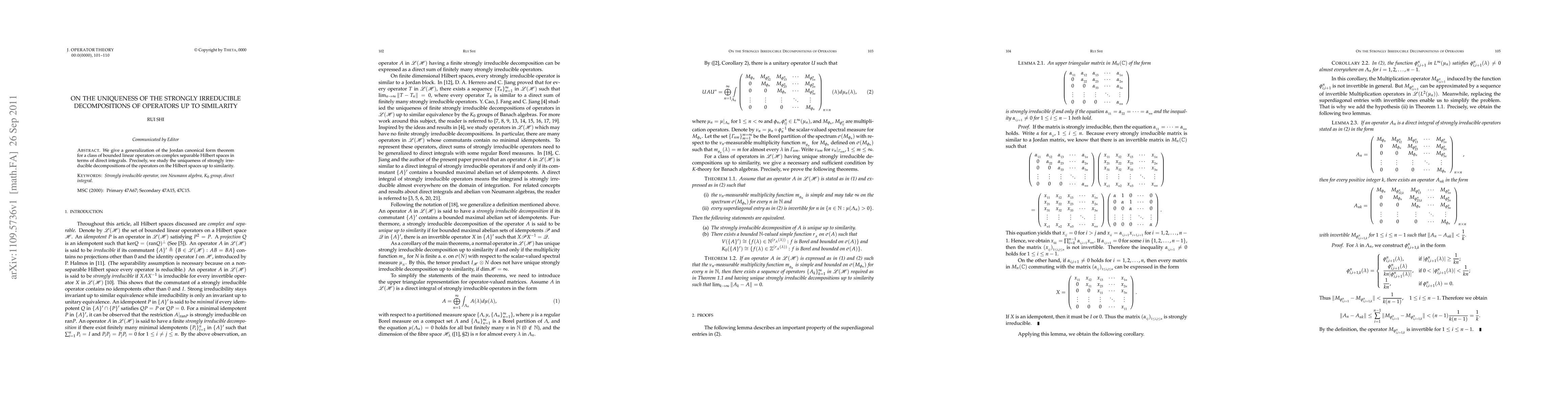 A study on the uniqueness of strongly irreducible decompositions of operators in Hilbert spaces, generalizing the Jordan canonical form theorem through direct integrals.