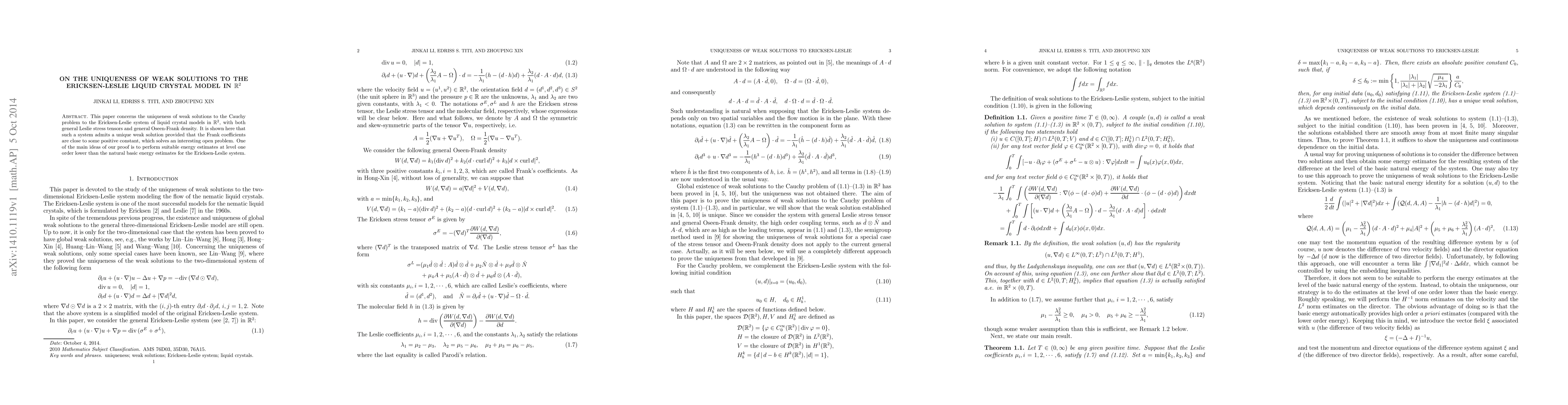 This paper establishes the uniqueness of weak solutions to the Ericksen-Leslie liquid crystal model in $\mathbb R^2$ under specific conditions on the Frank coefficients. The authors solve an open problem by proving uniqueness through novel energy estimates at a lower order than typical methods.