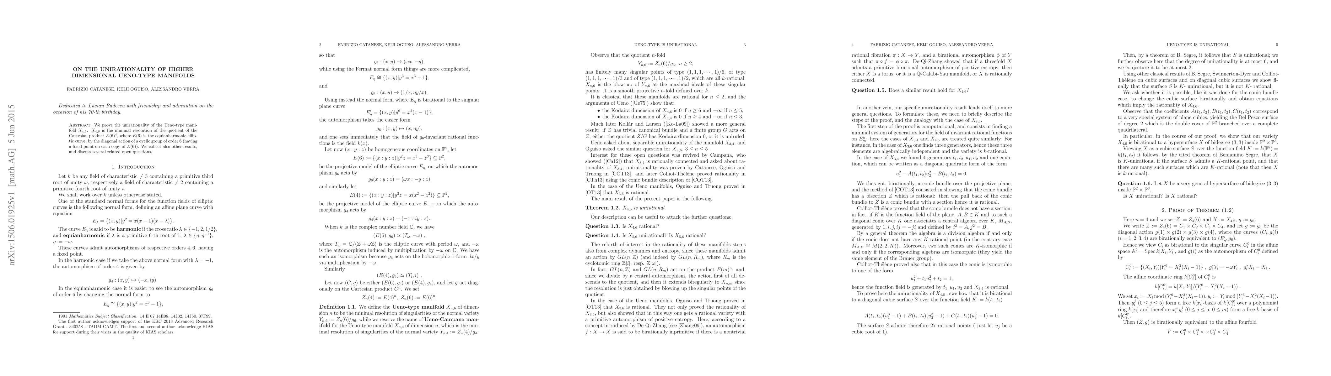 We prove the unirationality of the Ueno-type manifold $X_{4,6}$. $X_{4,6}$ is the minimal resolution of the quotient of the Cartesian product $E(6)^4$, where $E(6)$ is the equianharmonic elliptic curve, by the diagonal action of a cyclic group of order 6 (having a fixed point on each copy of $E(6)$). We collect also other results, and discuss several related open questions.