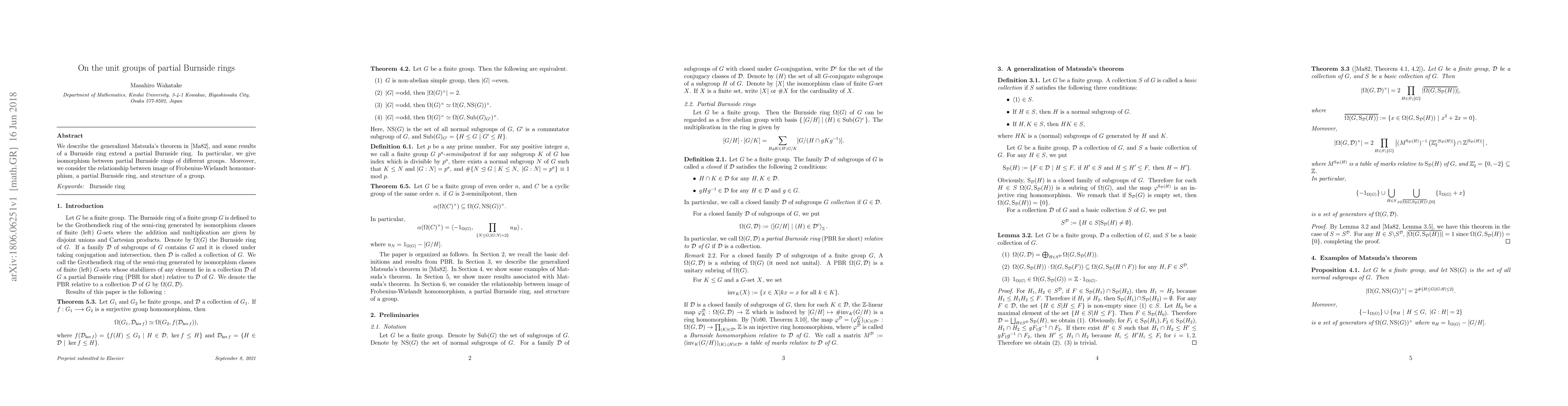 Summary: This paper presents an extension of Matsuda's theorem for partial Burnside rings, establishing isomorphisms between partial Burnside rings of different groups and exploring the connection between the Frobenius-Wielandt homomorphism, partial Burnside rings, and group structure.