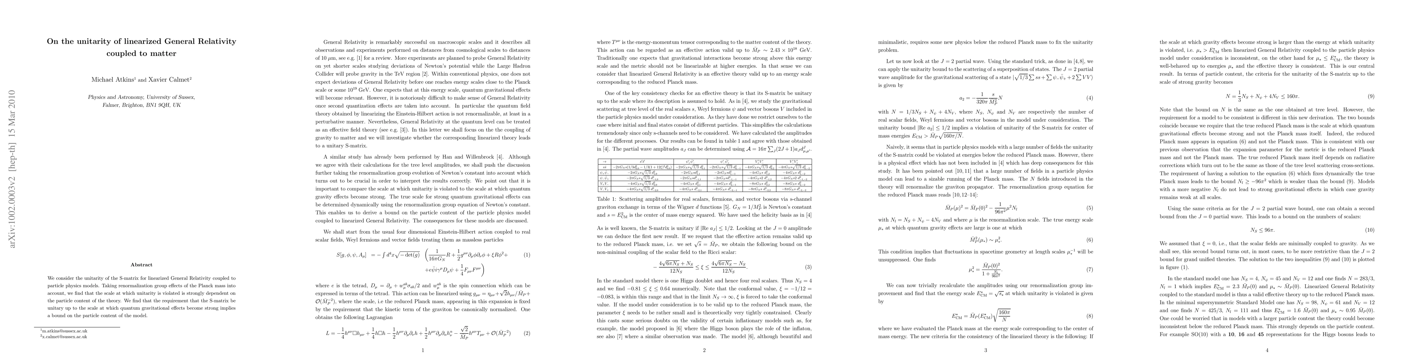 This paper investigates the unitarity of the S-matrix for linearized General Relativity coupled with particle physics, revealing that unitarity is violated at a scale dependent on the theory's particle content. It concludes that maintaining unitarity up to the quantum gravity scale imposes a constraint on the model's particle composition.