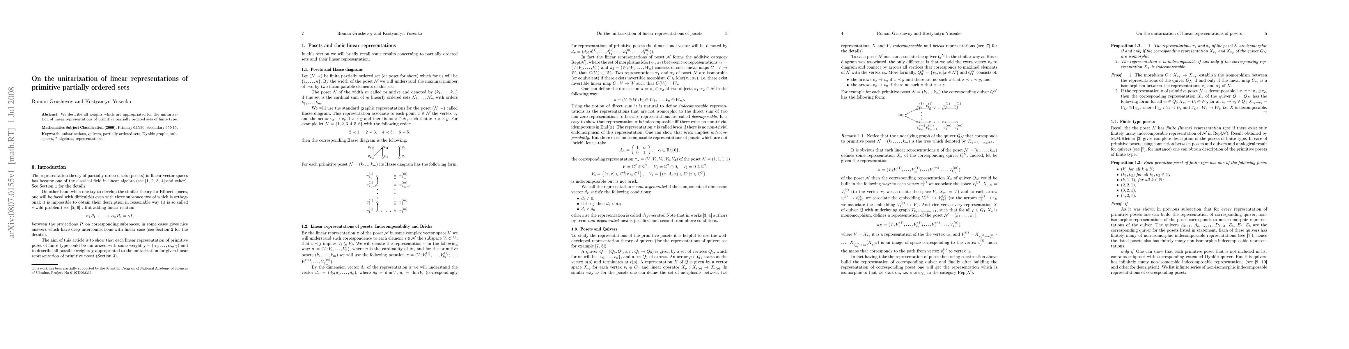 Summary: This paper identifies all weights suitable for the unitarization of linear representations of primitive partially ordered sets of finite type, providing a comprehensive framework for their application.