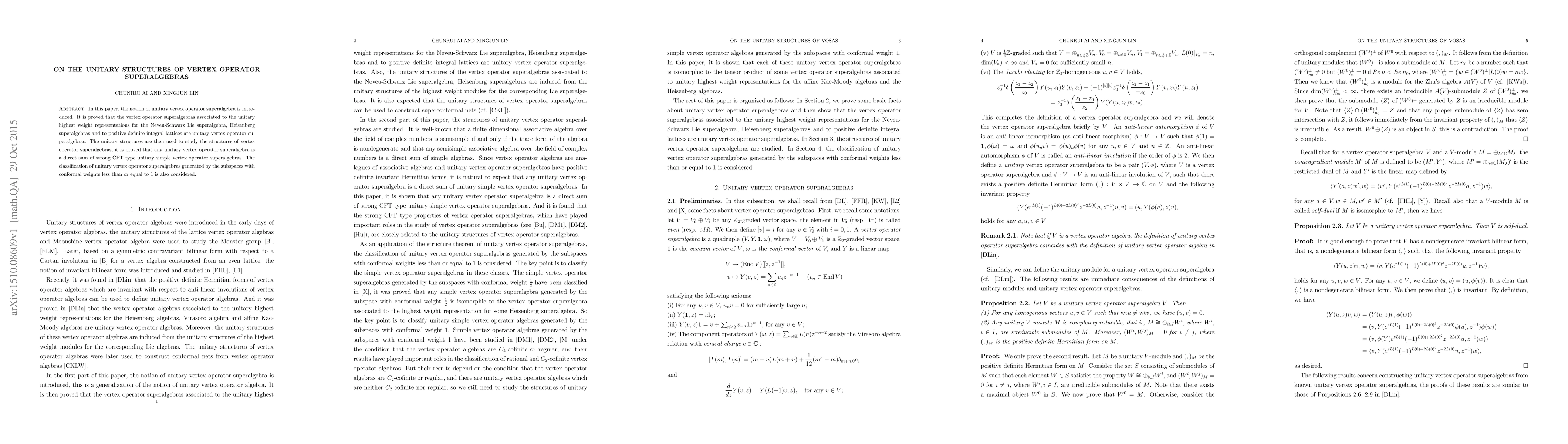 This paper introduces the concept of unitary vertex operator superalgebras and demonstrates that specific superalgebras and lattices are unitary. It further proves that any unitary vertex operator superalgebra can be decomposed into a direct sum of strong CFT type simple vertex operator superalgebras, and classifies unitary superalgebras generated by low conformal weight subspaces.