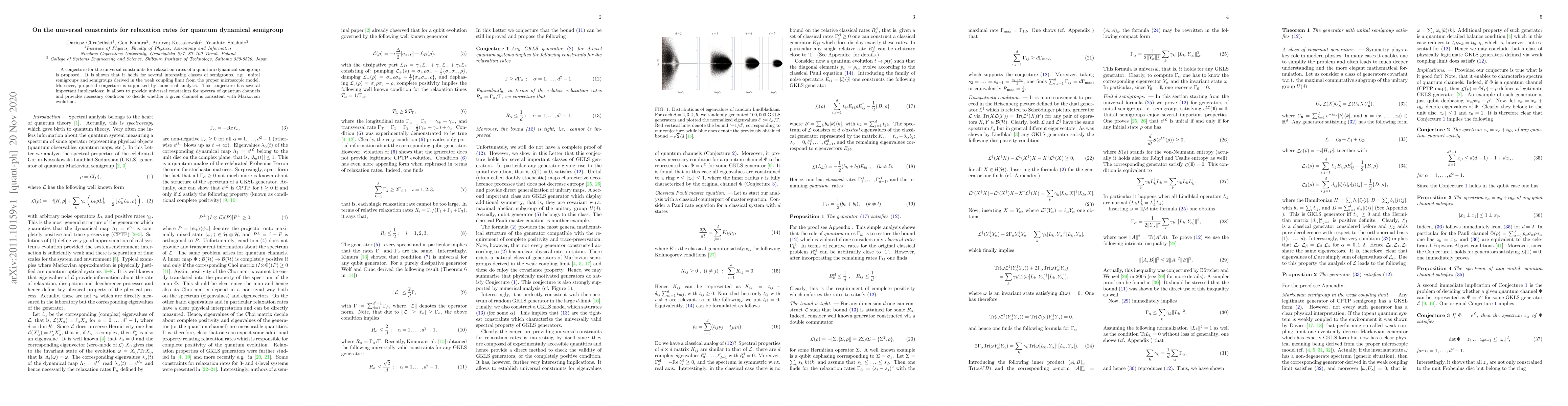 The paper proposes a conjecture for universal constraints on relaxation rates of quantum dynamical semigroups, validated for several classes of semigroups and supported by numerical analysis. This conjecture has significant implications for constraining quantum channel spectra and determining Markovian evolution consistency.