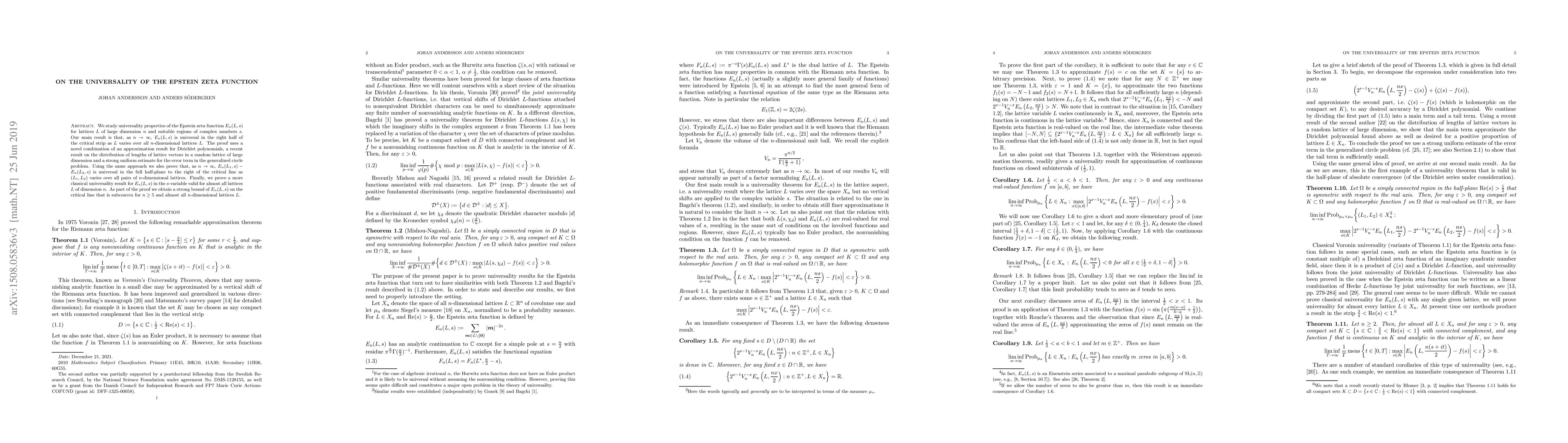 This paper investigates the universality of the Epstein zeta function for high-dimensional lattices, demonstrating that it behaves universally in the right half of the critical strip as the dimension increases. The study also proves the universality of differences between Epstein zeta functions of different lattices in the full half-plane to the right of the critical line.