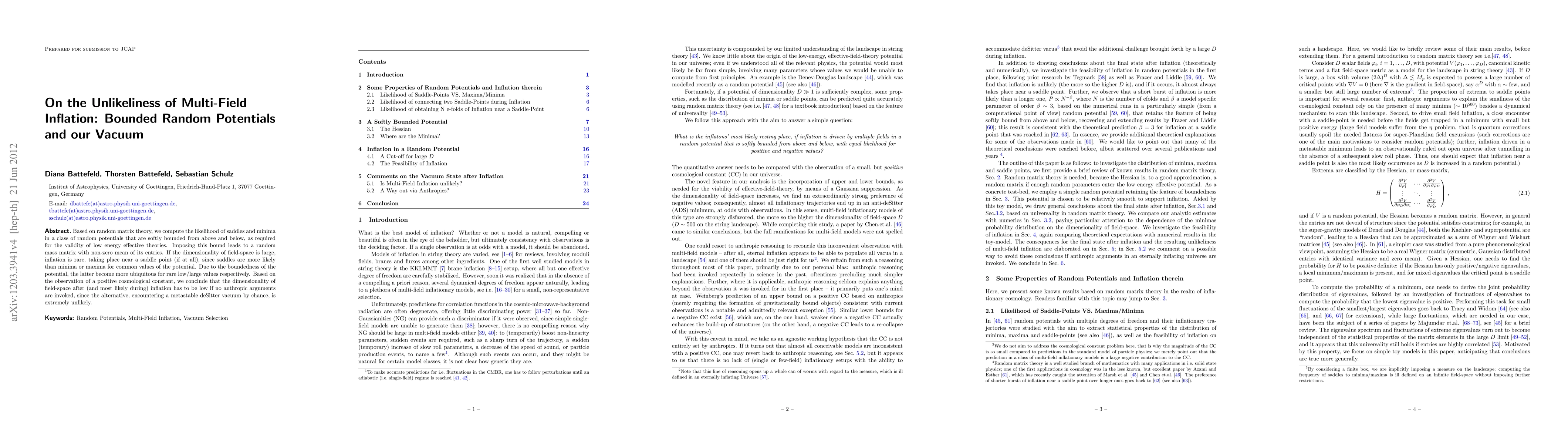 Based on random matrix theory, we compute the likelihood of saddles and minima in a class of random potentials that are softly bounded from above and below, as required for the validity of low energy effective theories. Imposing this bound leads to a random mass matrix with non-zero mean of its entries. If the dimensionality of field-space is large, inflation is rare, taking place near a saddle point (if at all), since saddles are more likely than minima or maxima for common values of the potential. Due to the boundedness of the potential, the latter become more ubiquitous for rare low/large values respectively. Based on the observation of a positive cosmological constant, we conclude that the dimensionality of field-space after (and most likely during) inflation has to be low if no anthropic arguments are invoked, since the alternative, encountering a metastable deSitter vacuum by chance, is extremely unlikely.