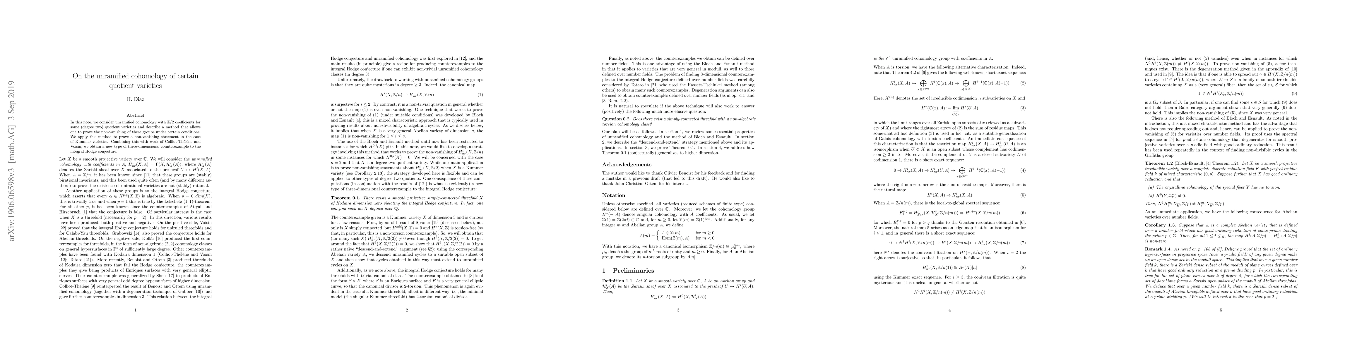 Researchers develop a method to prove non-vanishing of unramified cohomology groups for certain quotient varieties under specific conditions, leading to new counterexamples to the integral Hodge conjecture.