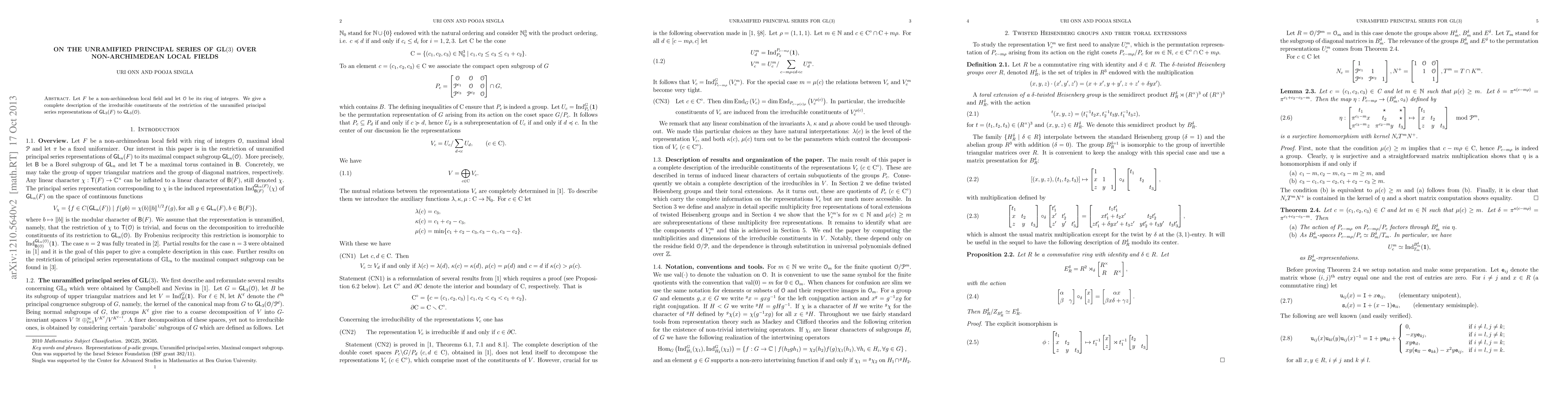 This paper provides a comprehensive analysis of the irreducible constituents of the unramified principal series representations of GL(3) over non-archimedean local fields, specifically when restricted to the group over the ring of integers. The findings elucidate the structure of these representations in detail.