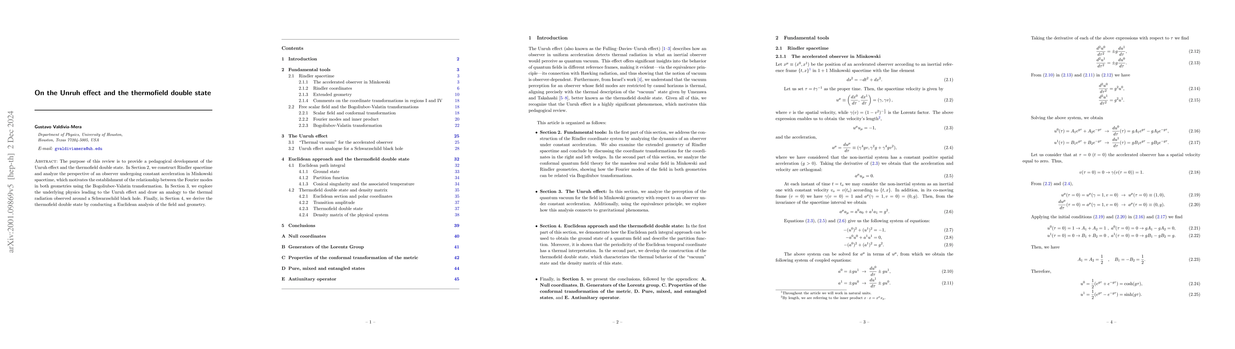 The goal of this article is to present a pedagogical development of the Unruh effect and the Thermofield Double State. In part I, we construct the Rindler space-time and analyze the observer's perspective under constant acceleration in Minkowski, which motivates relating the Fourier modes in both geometries using the Bogoliubov-Valatin transformations. In part II, we examine the physics involved, which leads us to the Unruh effect. Finally, in part III, we obtain the Thermofield Double State by performing a Euclidean analysis of the field and geometry.