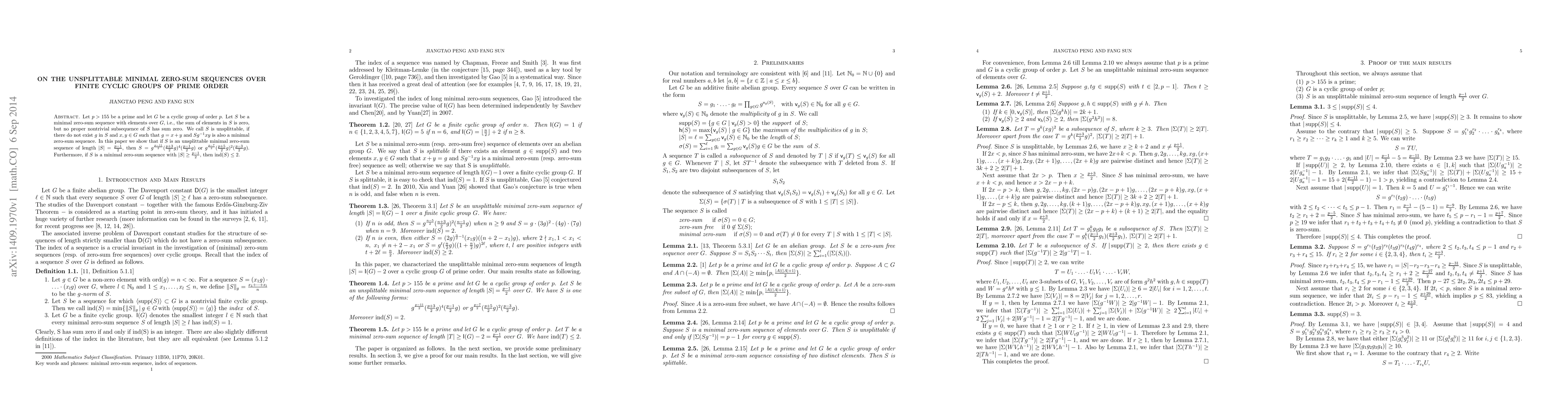 Researchers prove that minimal zero-sum sequences in cyclic groups of prime order have specific forms under certain conditions, with implications for understanding these sequences.