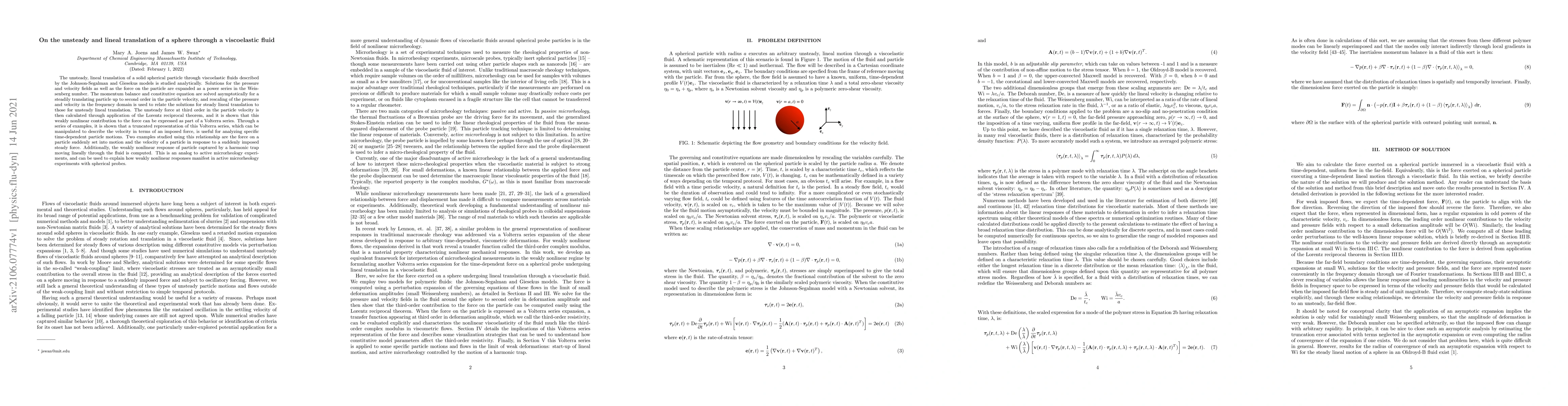 Researchers studied how a sphere moves through a fluid with non-Newtonian properties, finding that weakly nonlinear effects can significantly affect the force on the particle.