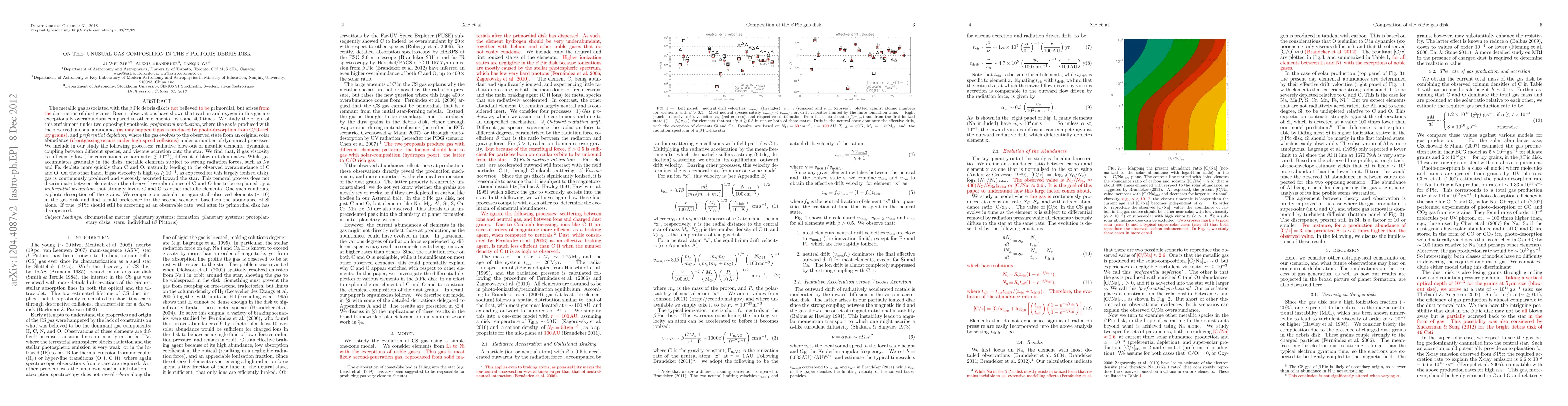 The metallic gas associated with the Beta Pic debris disk is not believed to be primordial, but arises from the destruction of dust grains. Recent observations have shown that carbon and oxygen in this gas are exceptionally overabundant compared to other elements, by some 400 times. We study the origin of this enrichment under two opposing hypothesis, preferential production, where the gas is produced with the observed unusual abundance (as may happen if gas is produced by photo-desorption from C/O-rich icy grains), and preferential depletion, where the gas evolves to the observed state from an original solar abundance (if outgassing occurs under high-speed collisions) under a number of dynamical processes. We include ... ... We find ... ...