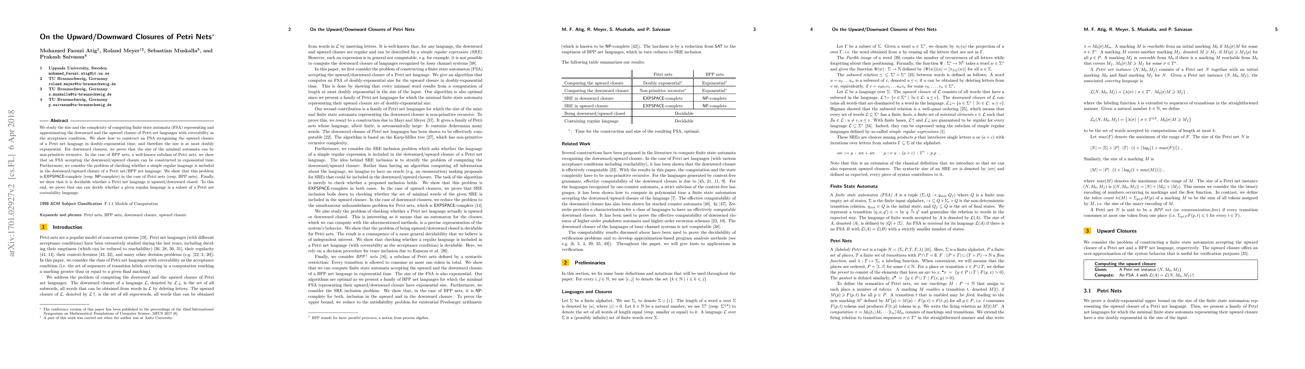 This paper explores the complexity of constructing finite state automata for upward and downward closures of Petri net languages, showing doubly-exponential time construction for upward closures and exponential time for BPP nets. It also proves the EXPSPACE-completeness of checking inclusion in Petri net closures and decidability of upward/downward closure for Petri nets.