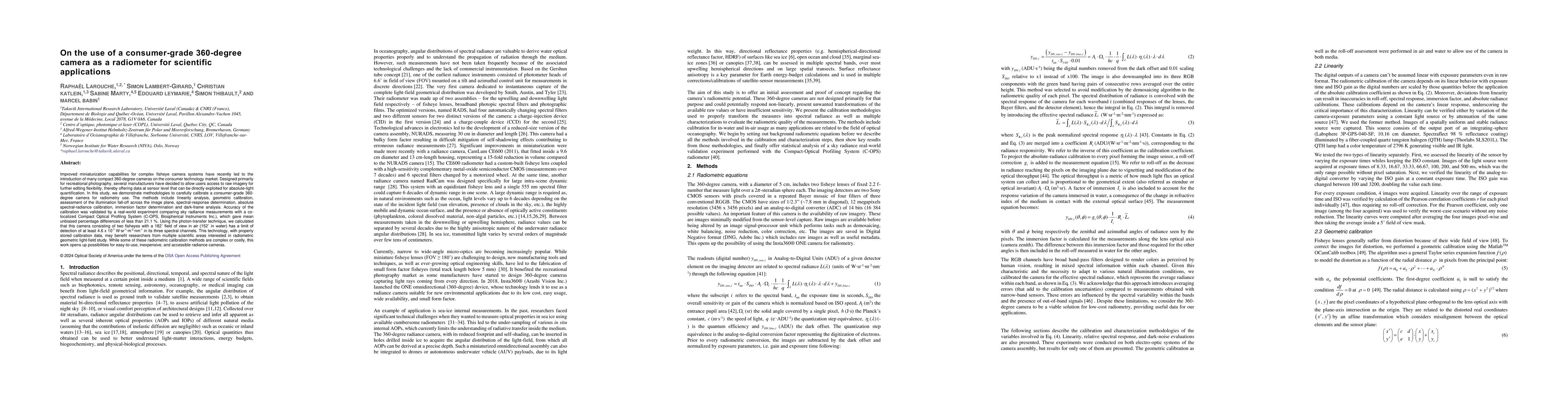 This paper explores the calibration of a consumer-grade 360-degree camera for radiometric use, demonstrating methodologies for geometric, spectral, and absolute calibration. The calibrated camera shows accurate sky radiance measurements and a high limit of detection, making it a potentially accessible tool for various scientific studies.