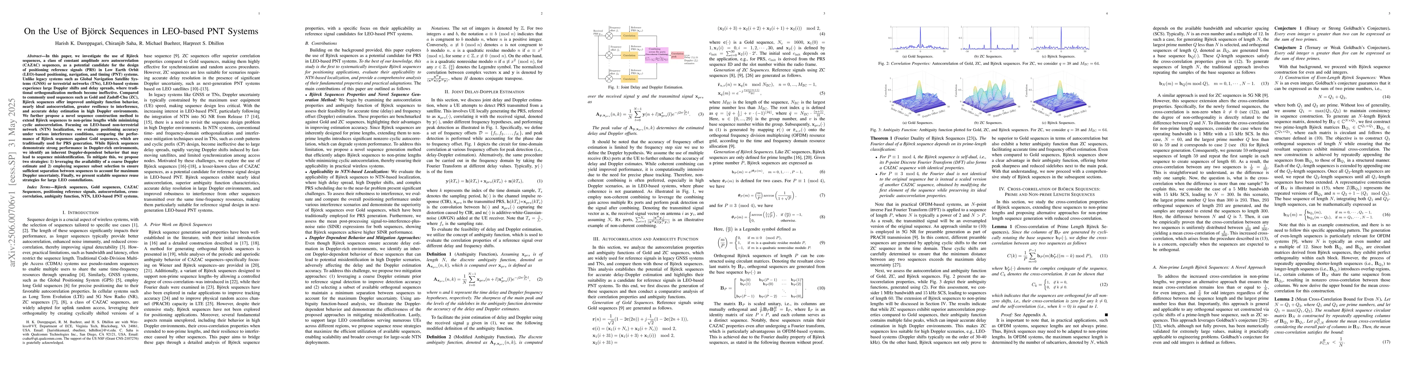 The paper presents a novel sequence construction method for extending Björck sequences to non-prime lengths and proposes strategies to address Doppler-dependent sequence misidentification in LEO-based PNT systems.