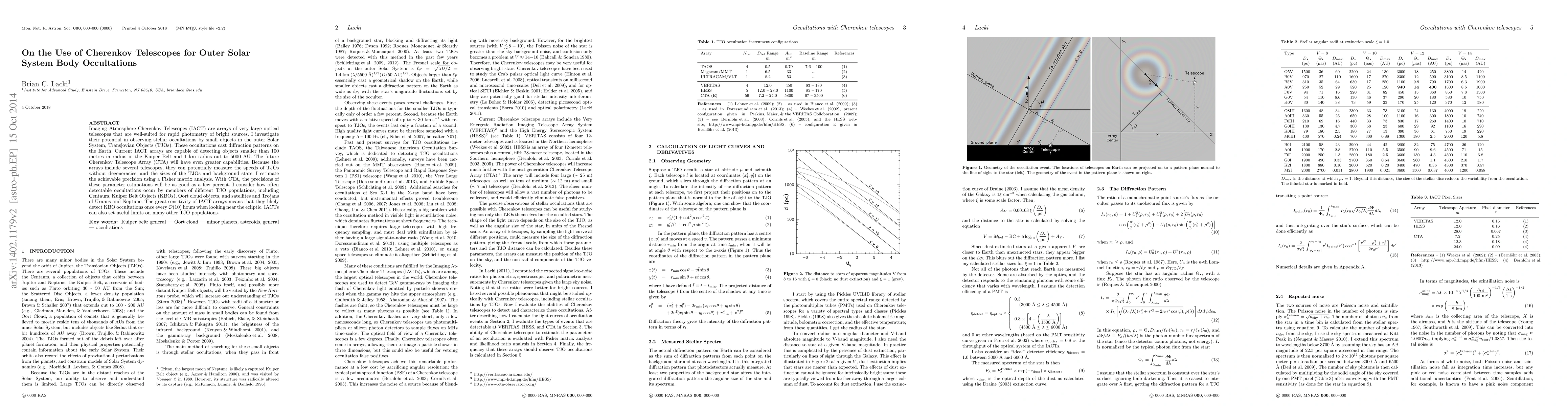 Imaging Atmosphere Cherenkov Telescopes (IACT) are arrays of very large optical telescopes that are well-suited for rapid photometry of bright sources. I investigate their potential in observing stellar occultations by small objects in the outer Solar System, Transjovian Objects (TJOs). These occultations cast diffraction patterns on the Earth. Current IACT arrays are capable of detecting objects smaller than 100 metres in radius in the Kuiper Belt and 1 km radius out to 5000 AU. The future Cherenkov Telescope Array (CTA) will have even greater capabilities. Because the arrays include several telescopes, they can potentially measure the speeds of TJOs without degeneracies, and the sizes of the TJOs and background stars. I estimate the achievable precision using a Fisher matrix analysis. With CTA, the precisions of these parameter estimations will be as good as a few percent. I consider how often detectable occultations occur by members of different TJO populations, including Centaurs, Kuiper Belt Objects (KBOs), Oort cloud objects, and satellites and Trojans of Uranus and Neptune. The great sensitivity of IACT arrays means that they likely detect KBO occultations once every O(10) hours when looking near the ecliptic. IACTs can also set useful limits on many other TJO populations.