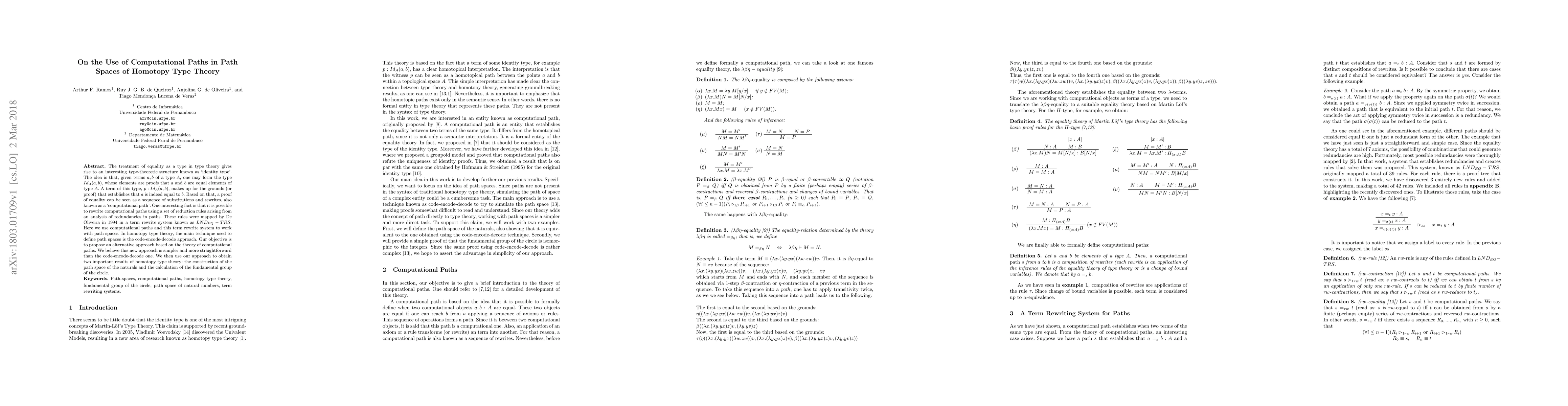 This paper proposes an alternative to the code-encode-decode approach for defining path spaces in homotopy type theory, utilizing computational paths and a term rewrite system. It aims to simplify the process and demonstrates its effectiveness by constructing the path space of naturals and calculating the fundamental group of the circle.