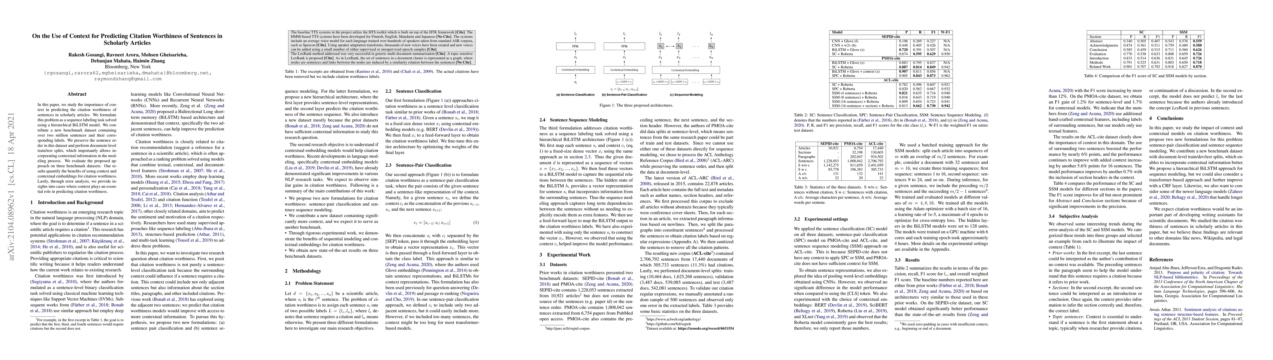 This paper investigates the role of context in predicting the citation worthiness of sentences in scholarly articles using a hierarchical BiLSTM model. It introduces a new dataset with over two million labeled sentences, enabling contextual modeling, and demonstrates the benefits of context through evaluations on multiple datasets.