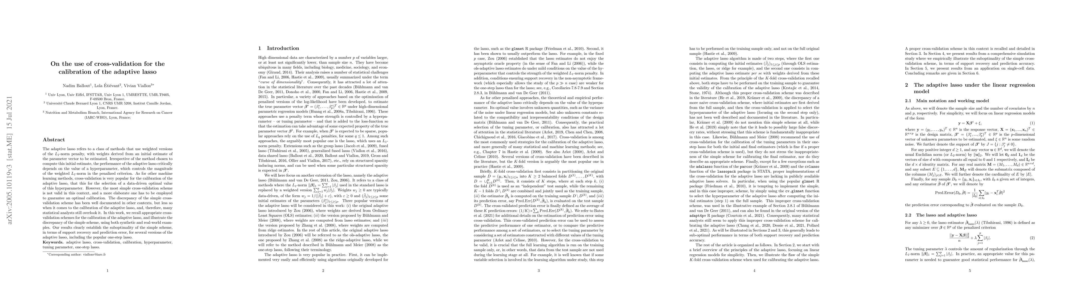 This research is important because it provides insights into the calibration of adaptive lasso estimators and their potential applications in high-dimensional regression analysis.
