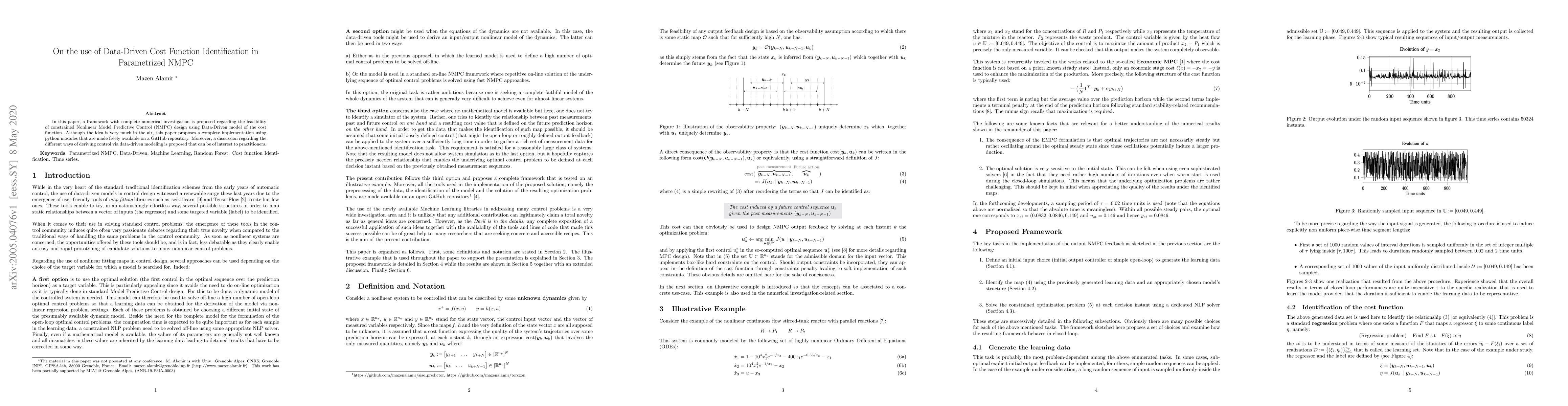 In this paper, a framework with complete numerical investigation is proposed regarding the feasibility of constrained Nonlinear Model Predictive Control (NMPC) design using Data-Driven model of the cost function. Although the idea is very much in the air, this paper proposes a complete implementation using python modules that are made freely available on a GitHub repository. Moreover, a discussion regarding the different ways of deriving control via data-driven modeling is proposed that can be of interest to practitioners.