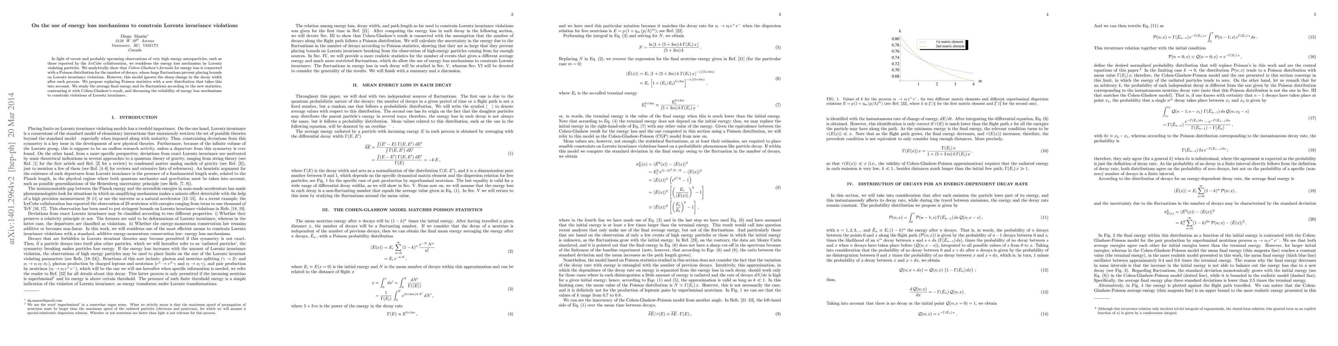 This paper examines the energy loss mechanisms of Lorentz-violating particles, showing that Cohen-Glashow's formula fails to account for significant decay fluctuations. The authors propose a new distribution that considers the sharp change in decay width, assessing its impact on constraining Lorentz invariance violations.