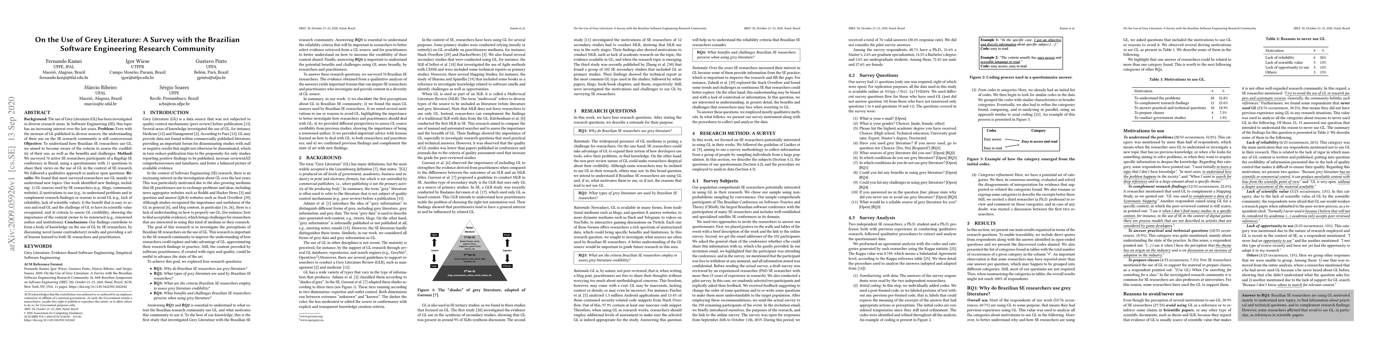 Background: The use of Grey Literature (GL) has been investigate in diverse research areas. In Software Engineering (SE), this topic has an increasing interest over the last years. Problem: Even with the increase of GL published in diverse sources, the understanding of their use on the SE research community is still controversial. Objective: To understand how Brazilian SE researchers use GL, we aimed to become aware of the criteria to assess the credibility of their use, as well as the benefits and challenges. Method: We surveyed 76 active SE researchers participants of a flagship SE conference in Brazil, using a questionnaire with 11 questions to share their views on the use of GL in the context of SE research. We followed a qualitative approach to analyze open questions. Results: We found that most surveyed researchers use GL mainly to understand new topics. Our work identified new findings, including: 1) GL sources used by SE researchers (e.g., blogs, community website); 2) motivations to use (e.g., to understand problems and to complement research findings) or reasons to avoid GL (e.g., lack of reliability, lack of scientific value); 3) the benefit that is easy to access and read GL and the challenge of GL to have its scientific value recognized; and 4) criteria to assess GL credibility, showing the importance of the content owner to be renowned (e.g., renowned author and institutions). Conclusions: Our findings contribute to form a body of knowledge on the use of GL by SE researchers, by discussing novel (some contradictory) results and providing a set of lessons learned to both SE researchers and practitioners.
