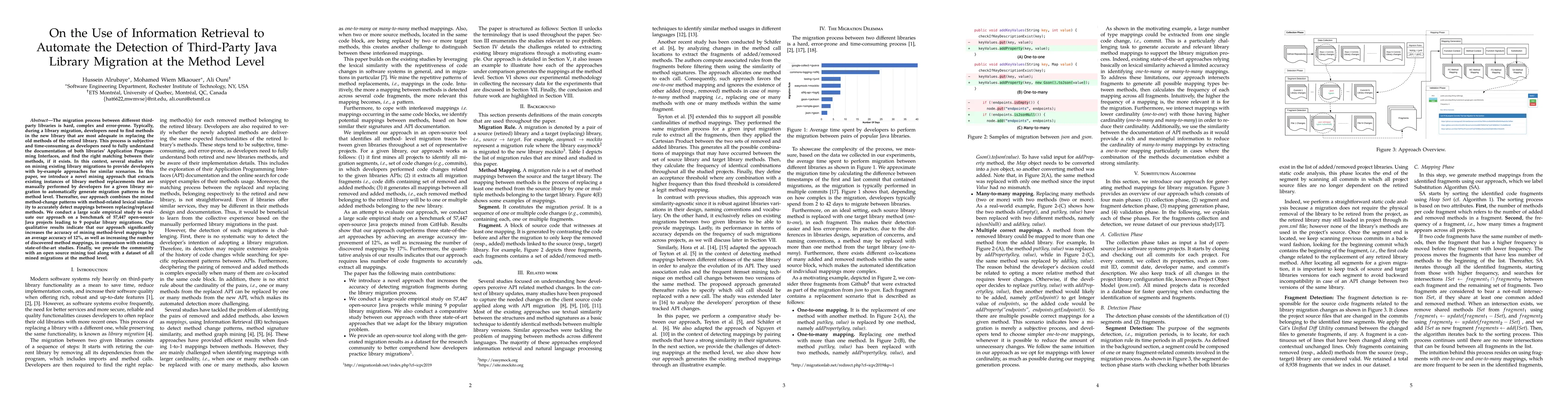 This paper proposes a novel information retrieval approach to automate the detection of method-level migrations between third-party Java libraries, significantly improving accuracy by 12% and discovering more mappings compared to existing methods. The approach mines existing migration instances and combines them with lexical similarity to generate migration patterns.