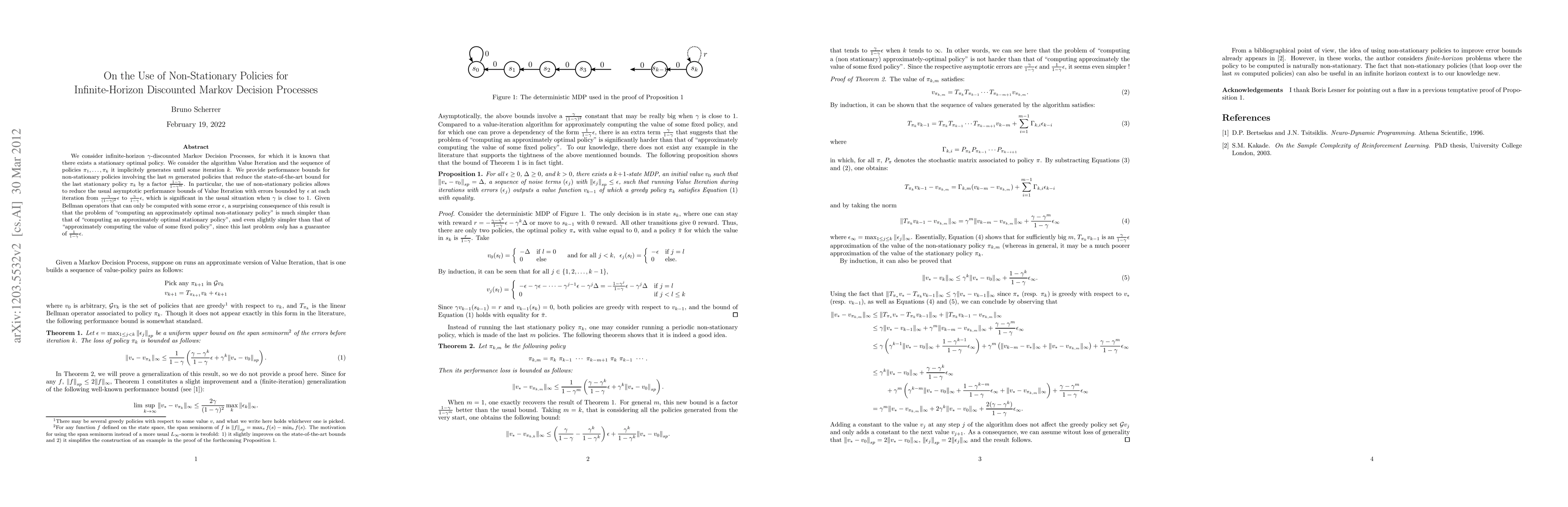 This paper explores the use of non-stationary policies in infinite-horizon discounted Markov Decision Processes, showing that they can reduce performance bounds compared to stationary policies. The study demonstrates that non-stationary policies can improve the efficiency of Value Iteration, especially when the discount factor is close to 1, and reveal that computing an approximately optimal non-stationary policy is simpler than its stationary counterpart.
